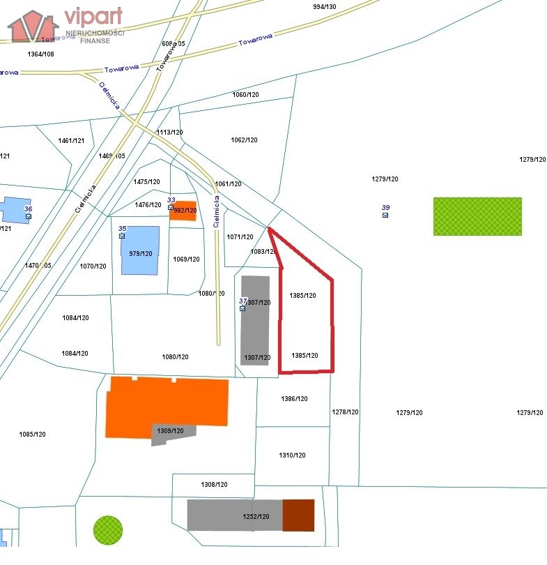 Mamy w swojej ofercie działkę z przeznaczeniem w miejscowym planie jako 6U - tereny zabudowy usługowej z wykluczeniem magazynów i składów, stacji obsługi pojazdów, warsztatów samochodowych, myjni, stacji sprzedaży pojazdów oraz stacji benzynowych. Działka znajduje się na zbiegu ulic Towarowej i Cielmickiej.
