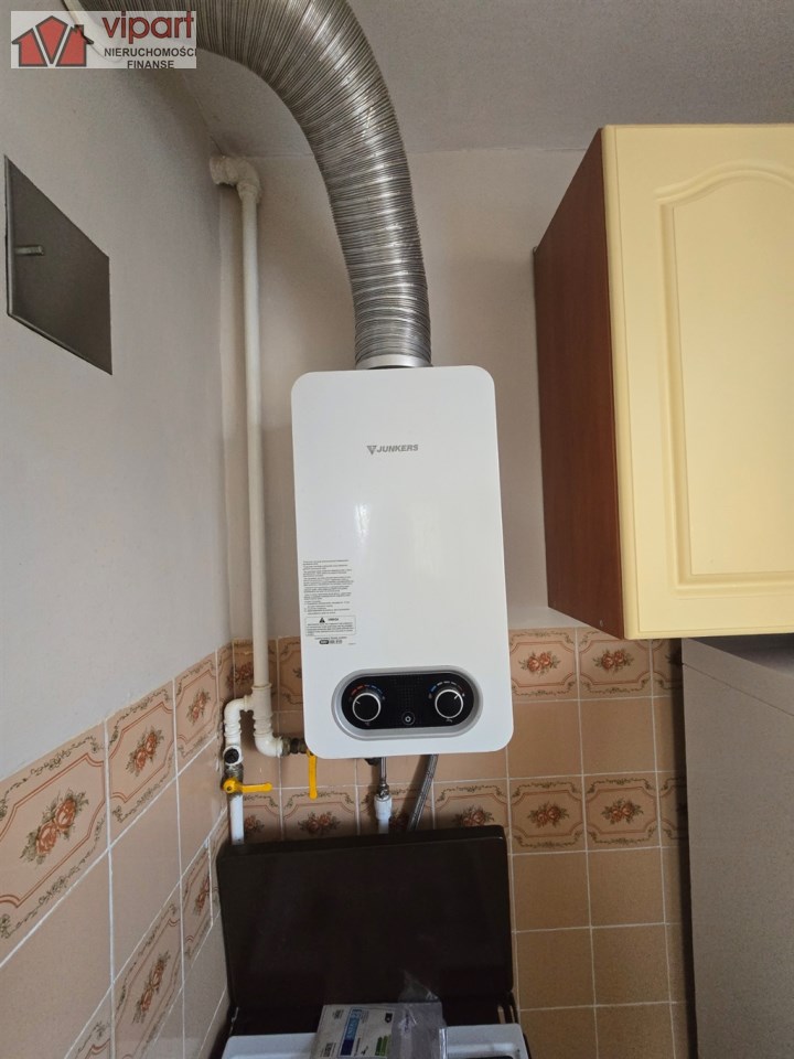 Łazienka kilka lat temu po remoncie. Wymieniony także gazowy podgrzewacz wody. Okno na balkon jest nowe.