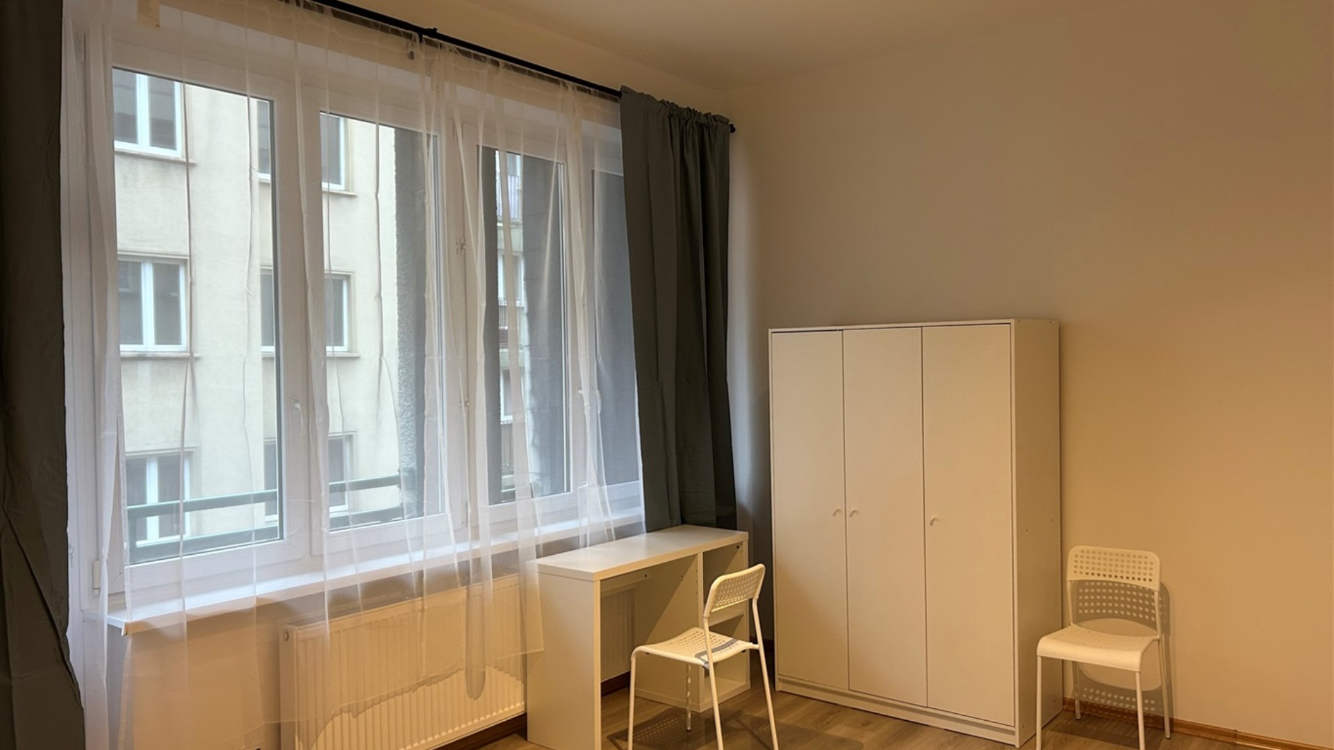 Do wynajęcia samodzielny pokój o powierzchni około 15 m2. Pokój wyposażony w szafę 3 drzwiową, biurko, komodę oraz łóżko.