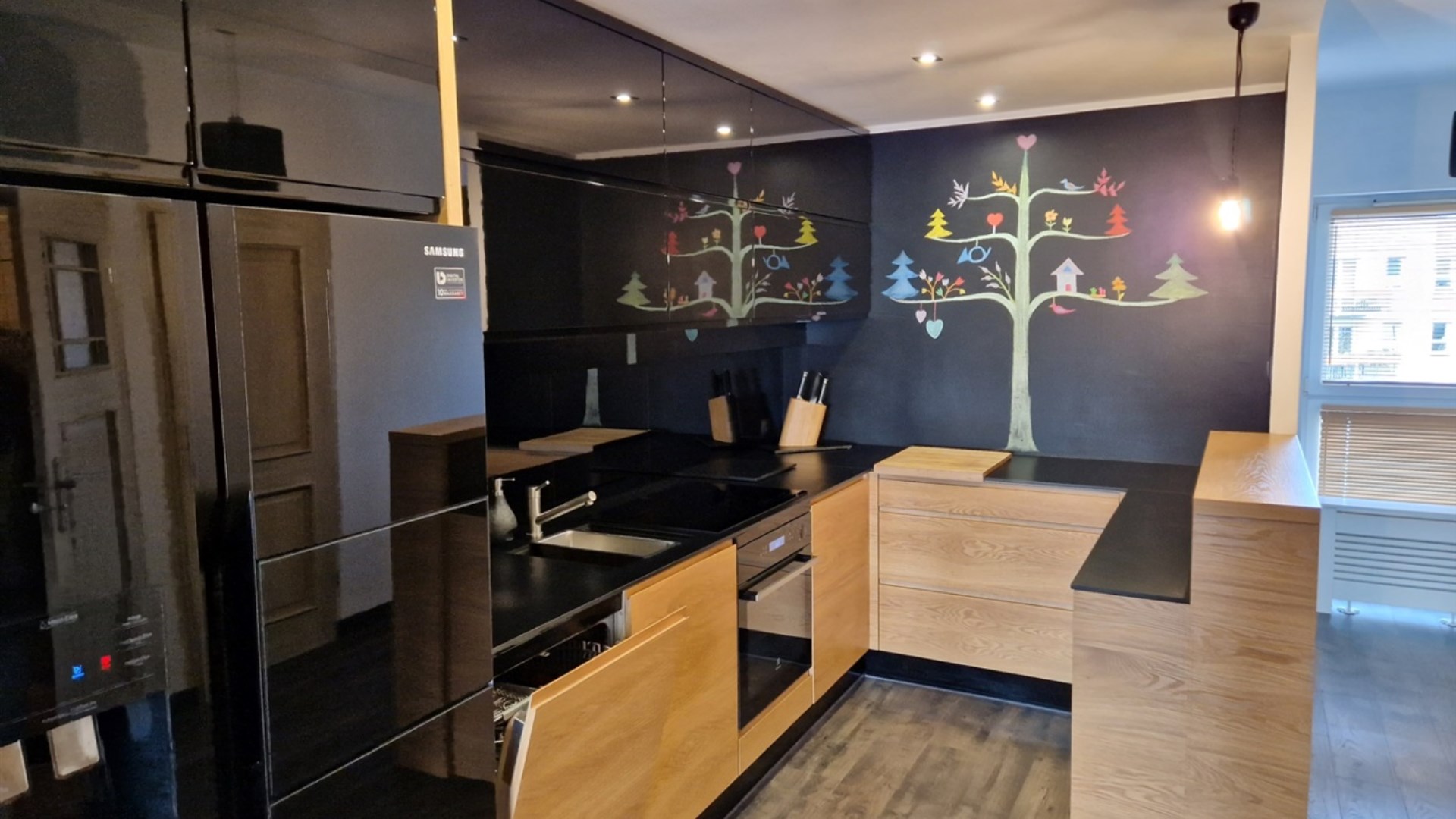 Lokal składa się z 3 pokoi (2 niezależnych oraz salonu otwartego na kuchnię), łazienki, przedpokoju oraz dużego tarasu.